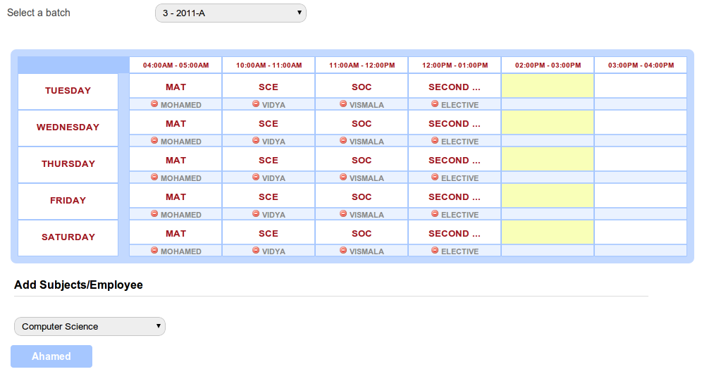 - An enhanced user interface that makes it easy to assign employees to class timing records when creating timetables.