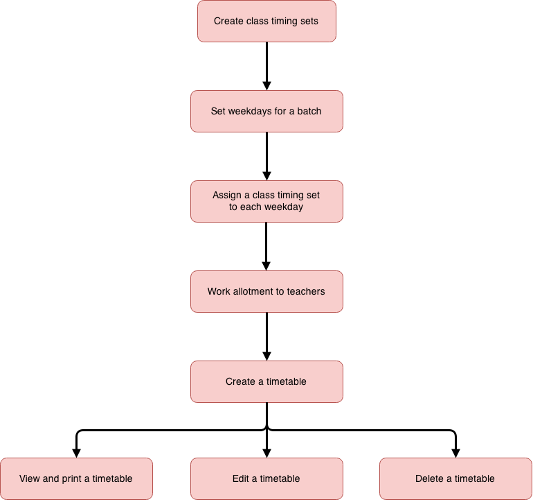 | Timetable | View the timetable for the day. Click a subject to view the complete timetable for a batch. | View the timetable for the day. | View the timetable for the day. |